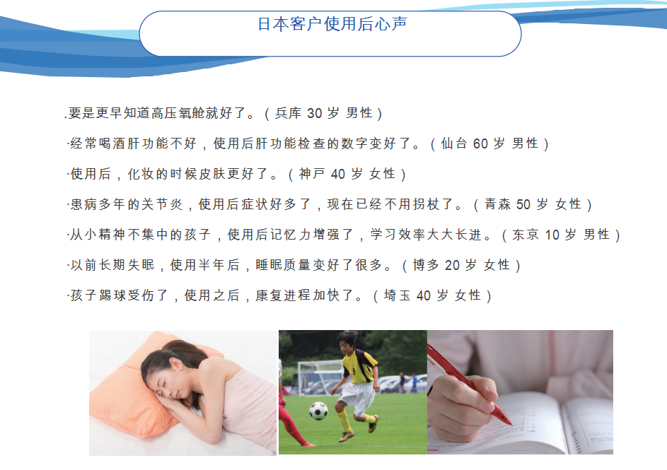 ① 高質量睡眠(在氧艙內睡眠 2 小時相當于正常氣壓條件下 6 小時的果);